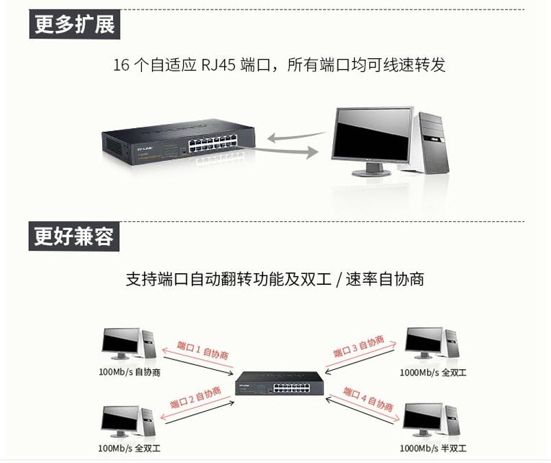 tp-link16口全千兆網(wǎng)絡(luò)交換機TL-SG1016DT機架式1000M接口分線器桌面tplink可分12路10個9路光纖監(jiān)控VLAN匯聚
