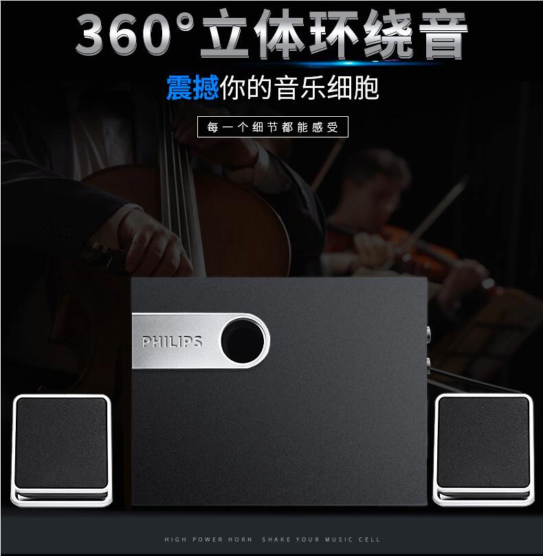 Philips/飛利浦SPA2341/93 電腦音響家用臺式筆記本低音炮多媒體2.1音箱桌面客廳電視通用超重低音影響
